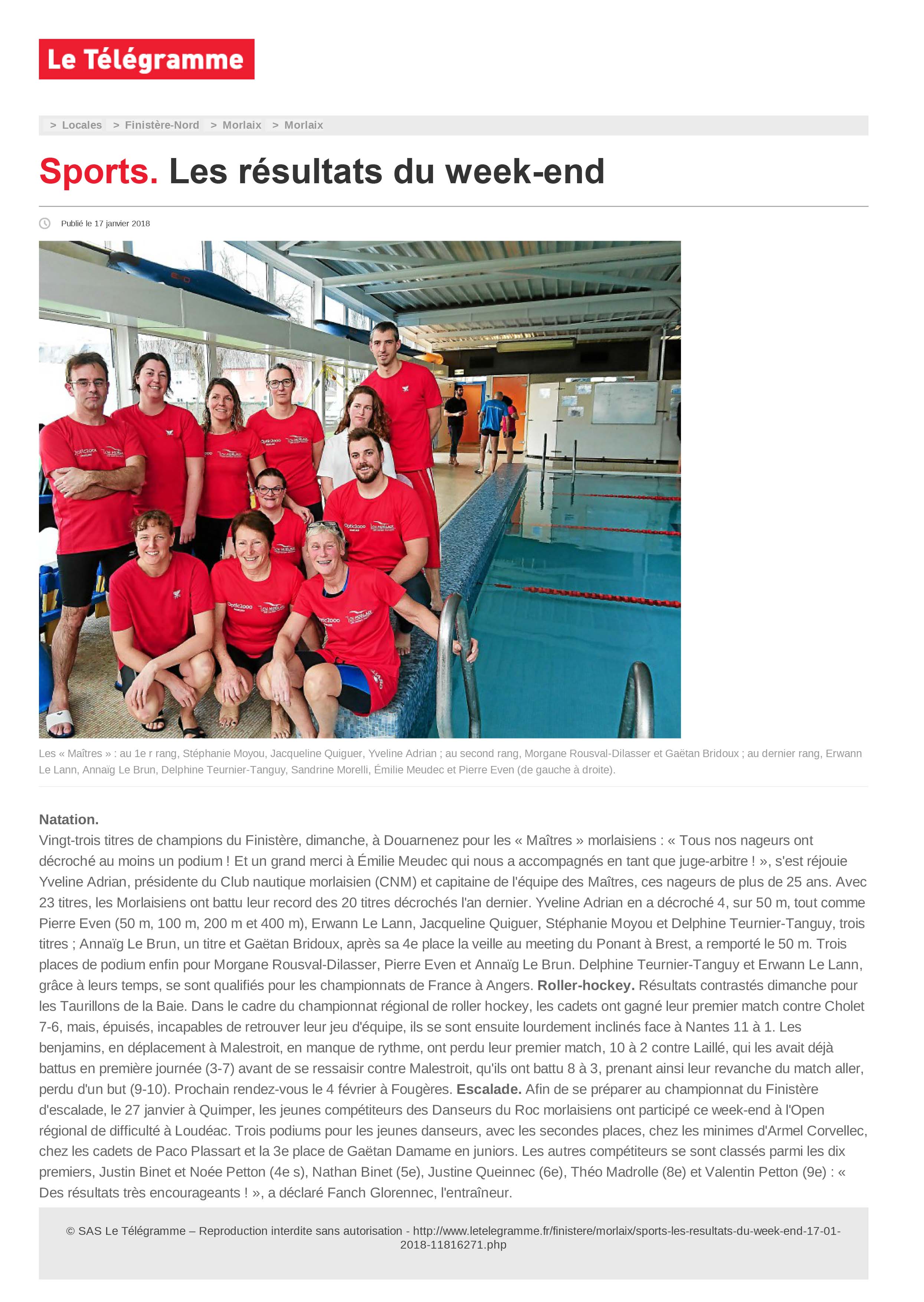 Article Télégramme Disctric du 20 janvier 2018